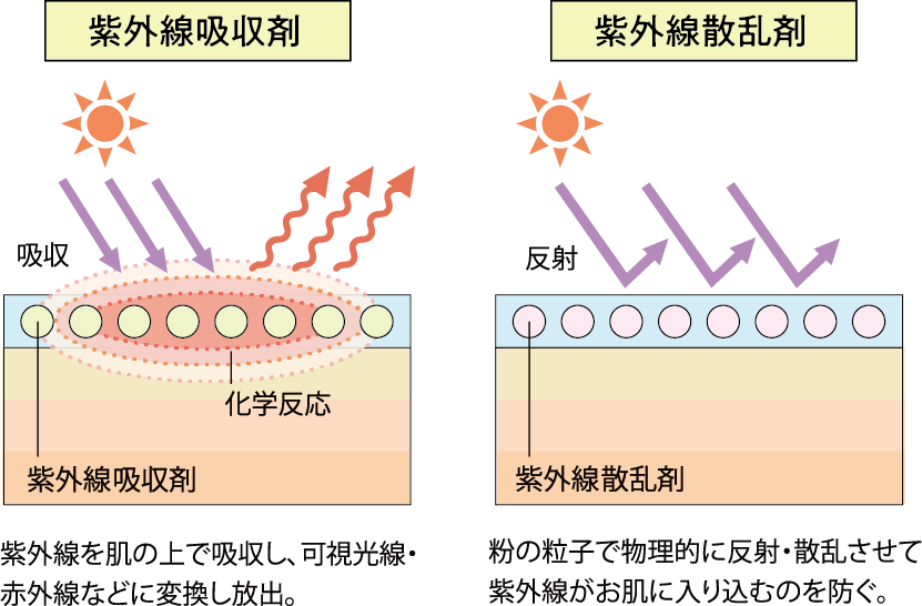 紫外線をミネラル粒子で反射させて、はね返します。